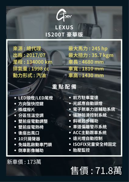 > Lexus IS200t 豪華版