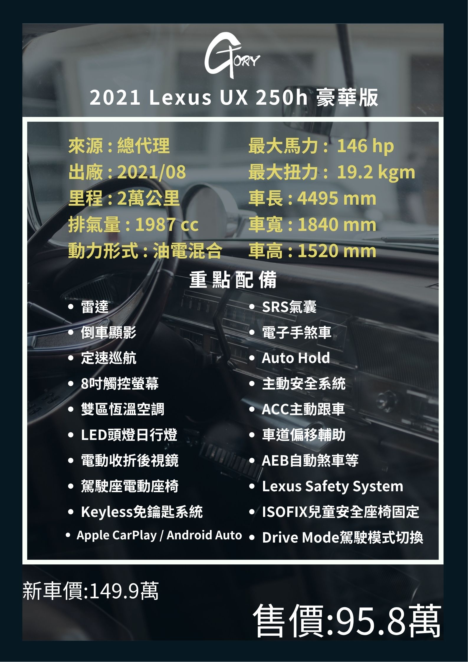 首頁 > 在庫車輛 > 2021 Lexus UX 250h 豪華版