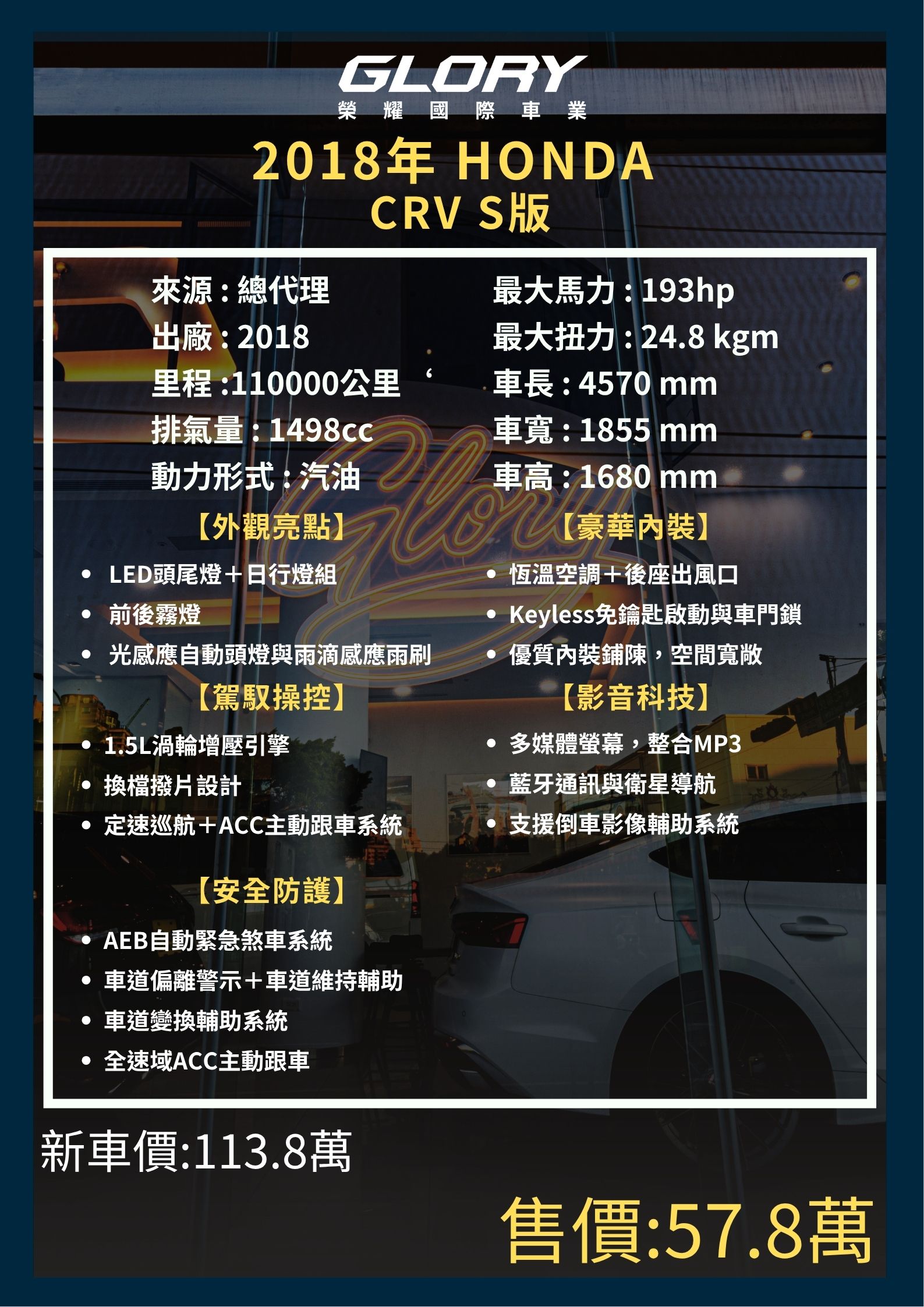 首頁 > 在庫車輛 > 2018 Honda CR-V 1.5 S版